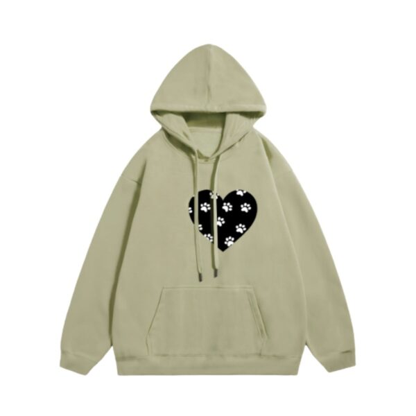 Vintage Green Hoodie with Heart and Puppy Paw Design